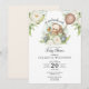 En elegant och viskös vattenfärgsfärgad nalle med ballongbabydusch i könsneutral brun och sage-grönt med blommigtar och uttrycket "vi kan vänta tidigt". Ett trendig sött stil för dina inbjudningskort!