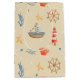 Vi presenterar vår Boho Nautical Boat Lighthouse Mönster-presentväska! Den här designen ger en söt bild av båtar, fyrar, vatten inslag och båthjälmar.