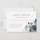 Trendiget och elegant bröllop OSA kort har blommor med marinblå vattenfärg med lush löv, bär och fjädrar.