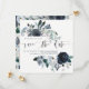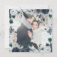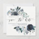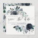 Det här trendiget och elegant bröllop sparar datumkortet med blommor med blå vattenfärg med lush löv, bär och fjädrar. På inbjudningens framsida finns snyggt av modern kalligrafi tillsammans med datum och information för namn och bröllop. Ditt personliga foto finns på baksidan omgiven av en blommigt ram.