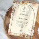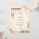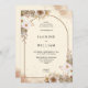 En romantisk och elegant Bho-bröllopsinbjudan med mjuka blommigtar av neutralt i ördiga bruna och beige toner. Perfekt för rustiskt, fallande, utomhusbruk eller modernt bohemiskt bröllop. Den minimalistiska bågen ram i kombination med handmålade blommor skapar en drömmande, estetisk utformning av bröllop.