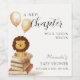 Ett nytt kapitel kommer snart att börja, bok babyduschtema, designfunktioner neutralt vattenfärgen bok, söt liten lejon, buntstorybook och ballong. Du kan anpassa din egen text och färg genom att "anpassa den här designen".