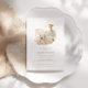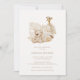 Den bohemininspirerade, roliga daghemskduschsknappen för barn har en vattenfärgad daghemsdeka för baby, en söt stuffie och giraffe i vackra neutralter. Baksidan av inbjudan har en beige vattenfärg med mönsterad bakgrund. En elegant, chic och en bra babyduschdesign.