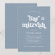 Denna enkla och boho Bar Mitzvah-inbjudan har vit, retro-typografi på en dammigt blå bakgrund med en matchande Davidstjärna.