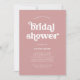 Den här enkla och boho inbjudningskort för möhippan har vit, retrotypografi på dammig rosa i ro.