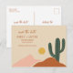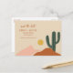 Perfekt för paret som planerar sin Boho-ökenbröllopsfirande. Detta postkort för att spara datum för bröllop på budget har en ökenvy med kaktus i en färgrik design tryckt med era bröllopsdetaljer.