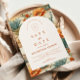 En raffinerad västerländsk design med varma ökenblommor, kaktusar och jordnära botaniska motiv arrangerade i en rik, målerisk komposition. Det välvda arrangemanget ger en tidlös arkitektonisk känsla och balanserar det djärva omgivande mönstret med en ren och elegant mitt. Terrakottafärger, mjuka neutrala toner och dämpade gröna nyanser skapar en jordnära men ändå romantisk palett - perfekt för en modern öken- eller västerländsk fest. Idealiskt för par som vill ha något unikt, konstnärligt och elegant sofistikerat.