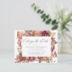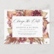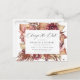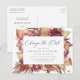 Behöver du ändra datum för din bröllopsdag? Våra unika, blomsterinspirerade "ändra datum" bröllopsförseningspostkort är perfekta för att meddela gästerna det nya bröllopsdatumet. Det stilrena ändra datum-postkortet har "ändra datum" i modernt kalligrafiskt typsnitt med en ram av vinröda, rosa och korallfärgade akvarellblommor och ökenlöv i jordnära toner av rost, brunt och beige. Anpassa postkortet genom att lägga till era namn, returadress, bröllopsdetaljer, bröllopswebbplats, med mera.