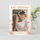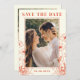 Gör bröllop-meddelandet helt unikt med Boho Orange Blommigt Line Art 2 Photo Save Date Card (Spara datumkortet). Den här vintage-inspirerade inbjudan innehåller även en QR-kod som gör att du enkelt kan få tillgång till dina bröllop-uppgifter med handritade trendig i orangen!