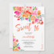 Boho orange blommigt Sweet 16 födelsedagsinbjudan med söt handmålad orange, rosa och gula blommor vattenfärgad illustration med ett modernt elegant-skript med bohemisk grönt löv. Perfekt för Vår, sommarträdgård utomhus party