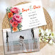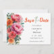 Lägg märke till din stora dag med den här eleganten och enkel blommigt för orange och rosa Spara datumkortet, designat med mjuka vattenfärgblommor, anpassade initialer och ett personligt foto. Med romantiska peonier, dahlier och delikat grönska i varma persikor, och koralltoner, blandar detta minimalistiska men snyggt-bröllop-meddelande modern elegans med blommigt charm. Idealisk för vår, sommar, trädgård eller bröllop med boho-temat, anger detta Spara datum tonen för din speciella dag med dess mjuka palett och information om personligen i färg. Perfekt för par som kärlek rengör, modernt bröllop-stationär med lite romantik och naturinspirerad skönhet.
