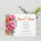 Boho Orange & Rosa Blommigt Photo Initialer Bröllo Spara Datumet