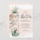 Chic inbjudningskort för möhippa har fläkt handflatan löv, pampasgräs, monstera löv och rosa orkidéer, med dina uppgifter i chic. MATCHING-objekt i vår butik.