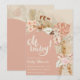 Oj baby! Sätt scenen för din stora händelse med vår persika-boho-pampasgräs-inbjudan! Oavsett om du letar efter inbjudningar till baby shower, inbjudningar till könsrevealerande fester, babyshower-kort, inbjudningar till baby sprinkle, shower-inbjudningar eller inbjudningar till blöja shower, är denna blomstermönstrade pampas-inbjudan perfekt och kan anpassas för alla evenemang! En ram av torkade blommor, palmblad, eukalyptusblad och pampasgräs skapar en rustik, bohemisk look som är perfekt för neutrala inbjudningar till könsrevealerande fester. Den beige och persikofärgade färgskalan gör denna till den perfekta inbjudan för baby shower-inbjudningar för flickor,
