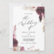 Den här boho-pampasgräs-inbjudan är perfekt för en sommarbröllop. Den blomsterinspirerade akvarelldesignen har bohemiska burgunderröda och rosafärgade blommor med kvistar av neutralt pampasgräs och gyllene torkade palmkvistar. Spara papper genom att inkludera detaljerna på baksidan av bröllopsinbjudan istället för på ett separat svarskort. Inkludera RSVP-informationen också om dina gäster svarar elektroniskt (valfritt).