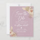 Spara datum-förlovningskort i vackra nyanser av dammtrosa rosa, beige och vit med en bågdesign och pampasgräsblad.