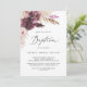 Den här boho pampas gräsbaptism-inbjudan är perfekt för en sommarpaptism i baby. Blommigtens vattenfärgsdesign har en bohemisk burgundi och rosa blommor med sprit av neutralt pampas-gräs och guldtorkade handflatan-löv.