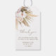 Boho-märkre att ansluta till hotellpaket för dina bröllop-gäster. Märkrna har vattenfärgspampasgräs med tropiska löv, orkidéer och ro i neutralt färg. "Tack" finns i det moderna kalligrafteckensnittet. Anpassa med ditt budskap, namn och bröllop.