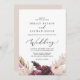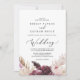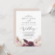 Det här boho pampas-bröllopskortet är perfekt för en sommar bröllop. Blommigtens vattenfärgsdesign har en bohemisk burgundi och rosa blommor med sprit av neutralt pampas-gräs och guldtorkade handflatan-löv.