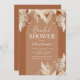 Rustik bohemian inbjudningskort för möhippa med en terracotta-bakgrund med skiftande egenskaper, vattenfärgade ökentorkade löv i handflatan, pampasgräs och en elegant brudens sida-mall som är lätt att anpassa.
