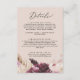 Kortet för boho pampas gräspersikor är perfekt för sommaren bröllop. Blommigtens vattenfärgsdesign har en bohemisk burgundi och rosa blommor med sprit av neutralt pampas-gräs och guldtorkade handflatan-löv.