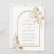 Den här bröllopsinbjudan innehåller färgade, vita färgade orkidéer, torra pampasgräs, vita mjältkväxter, vilda blommor, exotiska löv med ram och en kamelbakgrund färg på baksidan. Om du vill ha en mer avancerad anpassning av den här designen klickar du på länken "anpassa ytterligare". Matchande objekt är också tillgängliga.