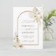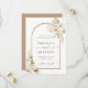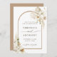 Den här inbjudan från bröllop spara datum innehåller färgade vattenfärgade vita orkidéer, torrt pampasgräs, vita anrikningar, vilda blommor, exotiska löv med en båge ram och ett foto på baksidan. Om du vill ha en mer avancerad anpassning av den här designen klickar du på länken Anpassa ytterligare. Matchande objekt är också tillgängliga.