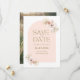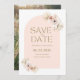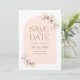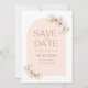 pampasgräs Boho bröllop spara datum-kort för rosa. Anpassa kortets framsida med information om bröllop och lägg till ditt favoritfoto på baksidan.