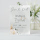 Den här designen har rosa och vit ros och brunt pampasgräs i halva ram på en mjuk grönt vattenfärgsbakgrund. Detta kort är en del av Boho Pampas & Rosa ros Bröllop Suite-samlingen skapat av enbart Farmhouse Press.