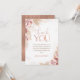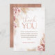 Sött boho blommigt flicka bebis shower tacksamhetskort med falskt rose gold-folie rubrik och olika torra blommiga arrangemang i rosaton och naturliga nyanser och med pampasgräs.