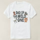 Kute, färglös boho pappa i vilden en första party t-shirt. Denna söta födelsedag innehåller boho stil safari-djur och trendigets moderna skript "" pappa i vild ett" med stamdjur/etnisk inslag i olika färg och former.