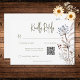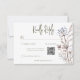 Meddela bröllop med lite underskattad elegans. Vårt svarskort för vattenfärgen bröllop med QR-kod har en delikat bukett av vilda blommor, handmålad i mjuka pastellnyanser. Föreställ dig ett mjukt sortiment av grå gult, blek blå, mjuk rosa, lugnande lavender och fräschande grönt, som fångar kärnan i en avslappnad än elegant. Vattenfärgsdesignen passar utmärkt på en skarp vit bakgrund och ser till att detaljerna i bröllop visas på ett utmärkt sätt. Den här fantastiska designen är perfekt för paret som vill ha en tidslängd och romantisk estetik med en aning av stollig och som anger perfektens ton för din speciella dag. Skapat av Farmhouse Press.