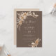 Boho baby shower inbjudan med en bukett av peach/beige akvarell blommor på brun bakgrund i en modern oval/avlång ram.