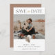 Boho-inspirerat foto sparar datumen för det moderna paret i en enkel text med blommgrafik. Ladda upp fotot och anpassa med namn, datum och plats för bröllop. E-post till familj och vänner som ber dem att reservera ert kommande bröllop-datum.
