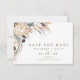 Boho Protea Pampas Bröllop spara datum Card Rustic, men med en modern tvist, spara datumkortet med en underbar vattenfärg, kung vita protea och pampas gräs arrangemangt. Den här designen har även ett foto som kan tas bort på baksidan av kortet.
