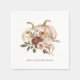 Personlig Boho Pumpkin Birthday Napkins. Utformningen har en klassisk vit bakgrund, som dekoreras med två vattenfärgspumpor som är adorerade med höstens blommigtar och botaniskt blad.