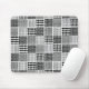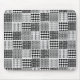 Den här musknappen har en Boho-design av fyrkanter med mönster i svartvitt.