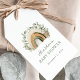 Boho Rainbow Baby Gift-Märkre. Vi presenterar vår förtjusande Boho Rainbow Baby Shower Collection, där vita, handmålade vattenfärgade regnbågar i fina toner av sage grönt, terracotta och stans bredvid trendig eucalyptus botanicals på en serene beige backdroppe, med ett kompletterande mönster på baksidan i djup skal. Denna samling omfattar allt du behöver för ett minnesvärt firande, från utsökta inbjudningar och visitkort till ett charmerande välkomsttecken, vackra märkre, favoritpåsar och till och med samordning av pappra tallrikar, kopp och blöjor. Låt den här samlingen sätta igång för en glädjande och snyggt sammankomst för att fira den lilla annans förestående ankomst.
