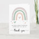 Roligt och modernt boho-födelsemeddelande och babydusch tack vare att du vickade kort med en abstrakt vattenfärg av en grönt, orange och lavender-regnbåge med hjärtan, din baby namn, ankomstdatum och födelsestatus, och "tack" i ett snyggt-skript med utslag. Anpassa ditt tack och lägg till ditt namnteckning i ett handskrivet skript på insidan.
