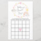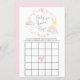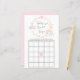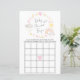 Cute whimsical flicka bingo duschspel med rosa och gult av regnbåge, sol, hjärtan, stjärnor, måne och moln och "Baby Shower Bingo" i ett snyggt-skript.