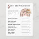 Lägg till skratt och lek i Boho Rainbow Shower med vår Boho Rainbow | Gissa det Prisa Högerna Baby Shower Game'. Ett roligt sätt att testa dina gästers kunskaper om spädbarn! Hämta dina minnen idag och skapa oförglömliga minnen!