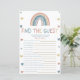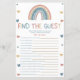 Det här är en boho-regnbåge som kallas Hitta gästbabyvilan. *Hitta gästen - Det här är ett isbrytarspel. Spelet innehåller 15 frågor. Varje gäst kommer att gå runt i duschen för att träffa andra gäster, hitta folk som matchar varje fråga och sedan fylla i deras namn. Den som har det mesta namnen fyllt, vinner! Utformningen består av en boho-regnbåge med hjärtan. Programmet färg är rött, rosa, blått, gult, grönt.