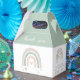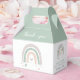 Boho babydusch-förmånslåda med "tack" i ett vitt skript i snyggten med svascher och en söt abstrakt vattenfärg av en grönt, orange och lavendelregnbåge med hjärtan. Anpassa med mor till namn och duschdatum.