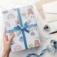 boho rainbow vattenfärgsdusch med pappra boho rainbow vattencolor babydusch Wrapping Papper seamless mönster innehåller regnbågar, baby-klänningar, tiger, fjäril.