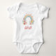 Fira din lilla enes första födelsedag med stil med denna boho pastell "Ett" design! Med en mjuk regnbåge, ömtåliga blommor och hjärtaccent, denna söta bodysuit eller t-shirt är perfekt för milstolpsbilder, tårt-smash och födelsedagsfester. Ett sött och stilrent sätt att markera den speciella dagen!