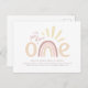 Boho regnbåge och solsken 1-års födelsedagsinbjuda vykort