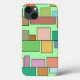 Telefonväskan har en modern design av rektanglar som är kopplade till vågrät linjer i olika storlekar och boho färg.