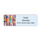 Dessa adressetiketter har en modern utformning av rektanglar som är kopplade till lodrät linjer i olika storlekar och färg.