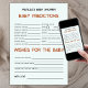 Babyduschverksamhet - förutsägelser från baby och önskemål för baby. Den här babyduschaktiviteten har återseende i stil och bränd orange och gult boho sol. Ljusblå bakgrund kan ändras. Lägg enkelt till din anpassning eller redigera i designen av verktyg för ytterligare anpassning.