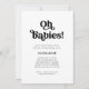 Den här enkla och boho svarta och vita babyduschinbjudan för twillingar, triplet eller många har retrotypografi som säger "oh spädbarn" på en könsneutral bakgrund.